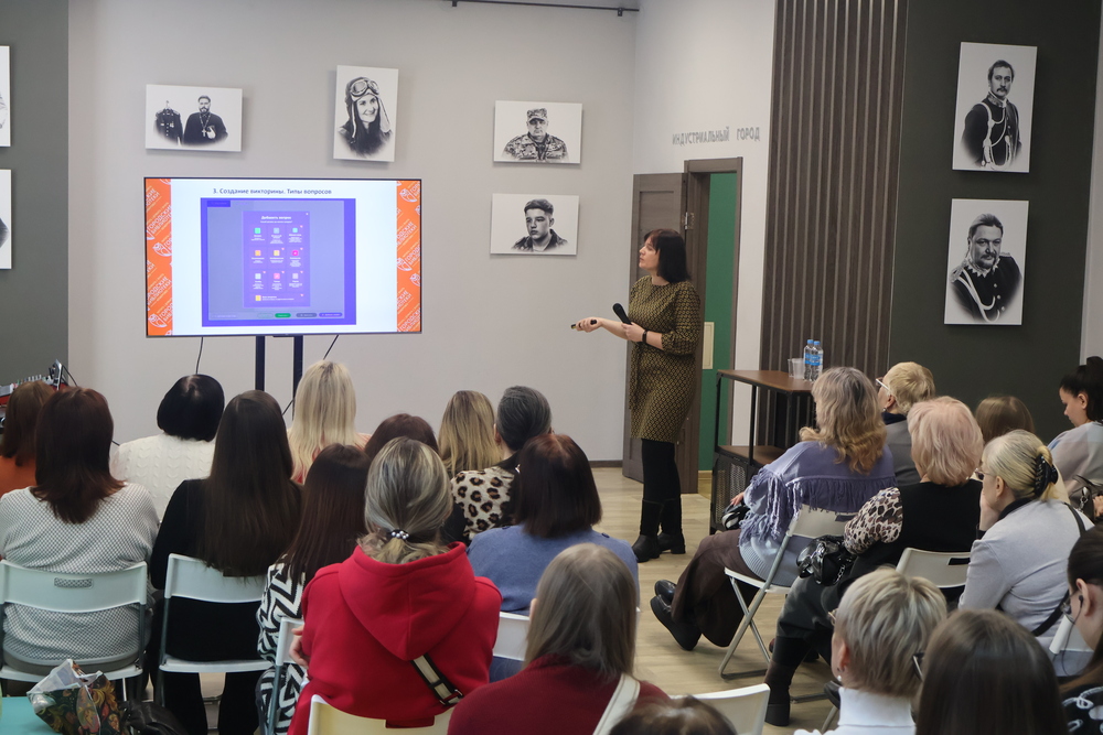 «Работа с интернет-ресурсом myQuiz». Докладчик – Корженко Ольга Сергеевна, заведующий библиотекой «Радуга». Практическая часть семинара была посвящена освоению инструментария для создания интерактивных мероприятий. Ольга Сергеевна продемонстрировала пошаговый алгоритм создания викторин на платформе myQuiz, наглядно показав эффективность её применения для вовлечения аудитории.