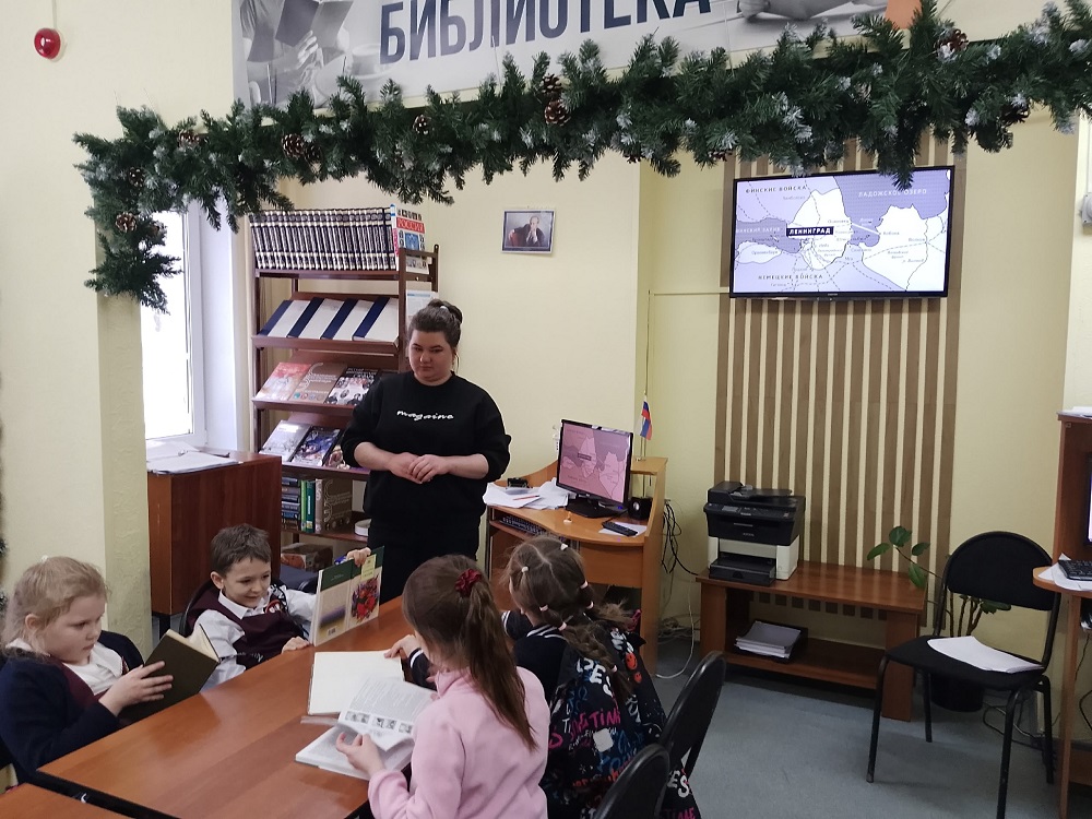 Ведущий специалист библиотеки Виолетта Витальевна Бердникова рассказала юным гостям о невероятном испытании, которое выпало на долю ленинградцев.