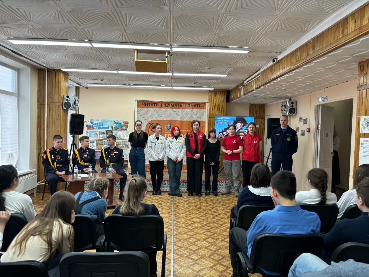 18 февраля 2026 года в Детской библиотеке им. А.М. Береснева состоялся ежегодный библиотечный прием кадет «Честь имею!». Участниками встречи стали воспитанники ГБ НОУ «Губернаторская кадетская школа-интернат полиции» и школьники-активисты Ленинского и Центрального районов. Мероприятие началось с интерактивной викторины, посвященной военачальникам и городам-героям Великой Отечественной войны. Затем студенты-волонтеры Кемеровского медуниверситета провели для гостей мастер-класс по оказанию первой медицинской помощи. В основной части приема кадеты рассказали школьникам об условиях поступления, учебной и физической подготовке, распорядке дня и уставном укладе жизни. Ребята поделились опытом жизни вне социальных сетей, а также о занятиях спортом, творчеством и военной подготовкой. Традиционно на мероприятии дали старт библиотечной акции «Читаем книги о войне». Для гостей провели викторину «Песни Великой Отечественной», победителем которой стал кадет Константин Якубенко, получивший в награду книги из серии «Правители России». Библиотечный кадетский прием зарекомендовал себя как значимое патриотическое мероприятие для молодежи и, следуя сложившимся традициям, будет продолжен в будущем.